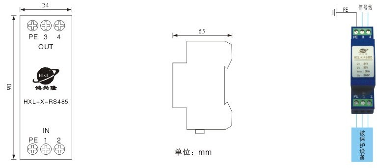 1:本產(chǎn)品安裝于信號通道和被保護(hù)設(shè)備之間,輸出端與被保護(hù)設(shè)備相連。